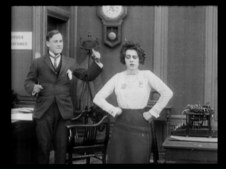 Alice Guy famously wanted her cast to “be natural” but a comedy of this kind does call for a bit more oomph in the performances. Swayne gets it right, pouting and spending much of the film in a huff. Fraunholz takes things a little too far, ostentatiously mouthing his dialogue for the camera and flailing around like Ford Sterling.