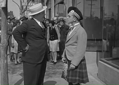 As amusing as it is to see Stan Laurel leap like a Jack Russell while wearing a kilt (and it is very, very amusing) I must take a moment to praise Oliver Hardy, who is sometimes underappreciated. Hardy does some great work in the opening scene at the harbor where he is amused by the clueless Philip and openly saying that he feels sorry for whoever has to claim “that.” His smile quickly fades when he sees that Philip is holding a photograph of HIM and greets him as his uncle. It’s just a little bit of business but the humorous way Hardy conveys his horror is good for a chuckle.