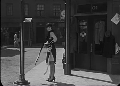 Or…..as the girl picks a rose, the tune would be lyrically matched to, “O my Luve’s like a red, red rose… ” and then when she turns and whistles for a taxi the tune lyric would be, “O whistle, an’ I’ll come to ye, my lad,”.