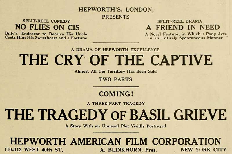 A Friend in Need was released in the United States by the Hepworth American Film Corporation as a split reel drama. The advertisement boasted that it was “a novel feature, in which a pony acts in an entirely spontaneous manner.” And what about the spaniel, may I ask? The picture doesn’t seem to have made an enormous impact when it was released but I am happy to give it some love today.