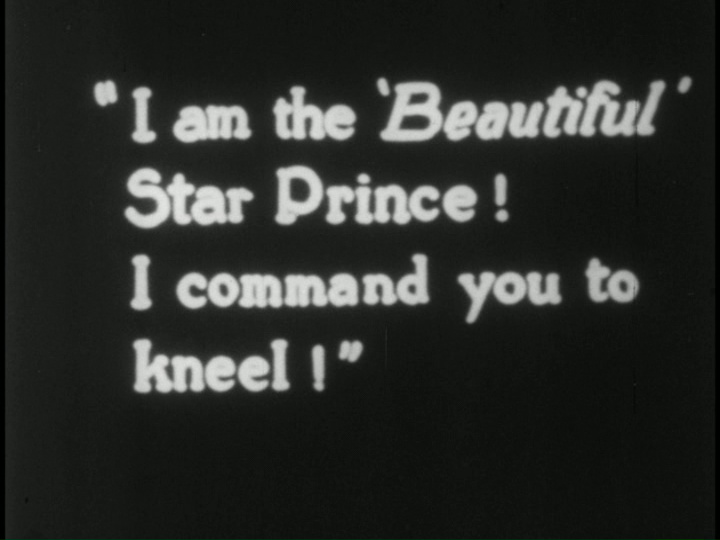 The Star Prince is a fairy tale in the Grimm/Perrault style, full of fairies and woodcutters but its core story is rather science-fictionish. A woodcutter discovers a shooting star and in its flaming ruins there is a baby. The woodcutter adopts the baby and he grows up to be the beautiful Star Prince (Zoe Rae). Unfortunately, his appearance has gone to his head and he is cruel to everyone, including a beggar woman who claims to be his real mother.