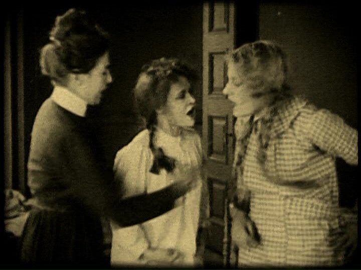 Orphanage settings were extremely popular for top actresses and in addition to Clark and Pickford, Colleen Moore and Marion Davies both donned gingham dresses and black stockings for film roles. And so, this picture opens in an institution. Lovey Mary (Marguerite Clark) is a teenager who helps care for the younger children while Maggie Duncan (Gladys Valerie) picks on them. Maggie sneaks out of the orphanage one night and returns two years later to drop off the son she has given birth to.