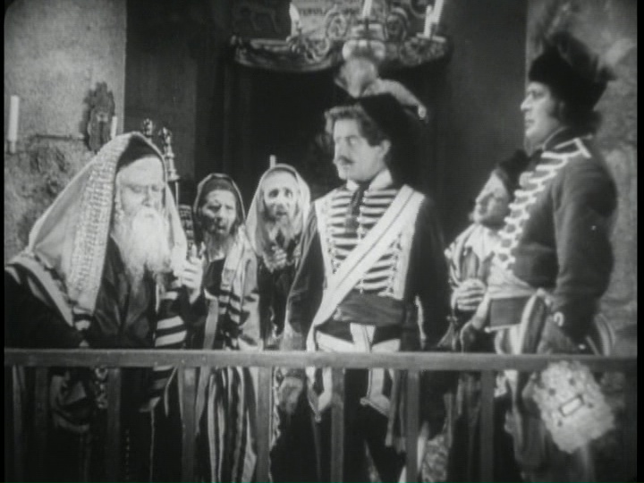 More recent events would surely have been on the minds of the filmmakers. (Schwartz reportedly changed plot elements in Tevya when he heard that Germany had invaded Poland.) In France, the Dreyfus Affair had ignited political opinions and showcased the depths of Western European anti-Semitism in the 1890s. If you are unfamiliar with the events, a young Jewish captain, one Alfred Dreyfus, was accused and convicted of espionage on the flimsiest of evidence while the real (non-Jewish) culprit was allowed to skip off. Like Leybke, Dreyfus enjoyed the prestige of a military position but that was no help at all once the chips were down. (18,000 Jewish soldiers were awarded the Iron Cross for their service to Germany in the First World War. History repeats.)