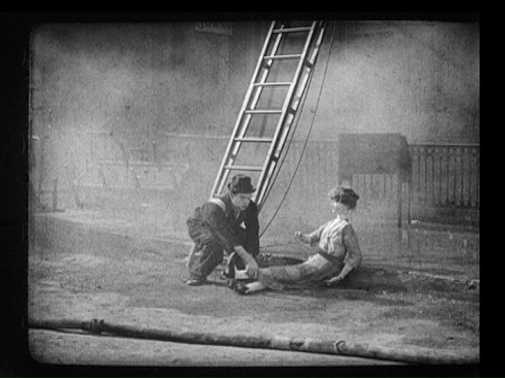 The most successful sequences, though, are Harry’s signature slow motion comedy bits. Later in the picture, Mary fakes a fire in order to have Harry rescue her. He panics, fumbles with the phone and nervously informs her that there are only three people at the firehouse “and two of us are horses.” Later in the rescue sequence, he manages to create a real panic when his fire engine fills the entire house with smoke.