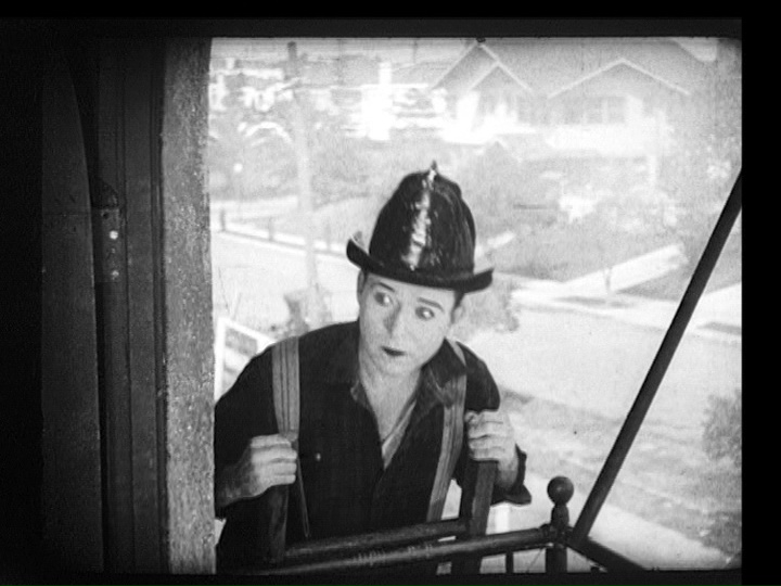 However, Langdon’s slow motion humor meant that classic gags did not always work for him. The firefighting sequence looks pretty good and Langdon charms as he annoys the crowd by constantly pointing out his Uncle Amos. Later in the sequence, he races into the flames to help with the rescue and emerges with a mannequin. With a more frenetic comedian, this gag would have worked because of the speed of the rescue. But sleepy Langdon’s slow descent makes his confusion less and less believable, especially since he has no trouble figuring out what he has rescued once he feels the mannequin’s face. (Compare Charley Chase and Oliver Hardy’s more successful mannequin antics in Fluttering Hearts, released the same year.)