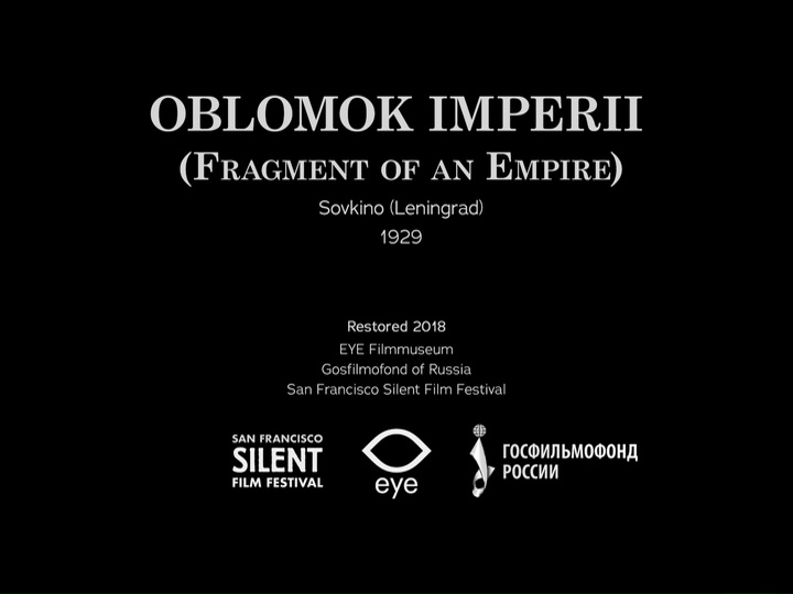 We’re in for a treat, a look at a new restoration of Fragment of an Empire, a 1929 Soviet drama directed by Fridrikh Ermler. A collaboration between the EYE Filmmuseum, Gosfilmofond of Russia, and the San Francisco Silent Film Festival, this restoration combines materials held by EYE and the Cinémathèque Suisse to create the most complete version of the film available in decades.