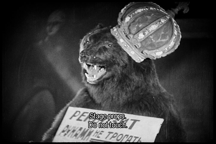 As you can see, the restored image is quite lovely. The film is in black and white and features the original Russian title cards with optional English subtitles.