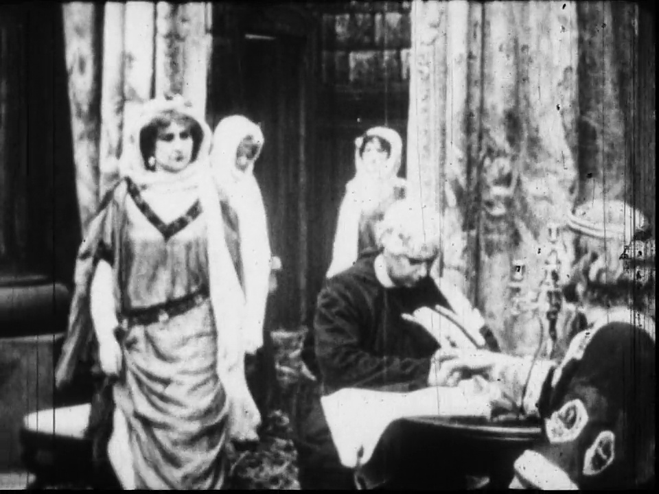 This picture is worth seeing for any fans of classic poetry curious about silent film adaptations, anyone who likes a medieval picture and anyone interested in the history of Vitagraph. While it’s not a masterpiece, it was a critical success and seems to have done a decent business at the box off, so it represents the kind of pictures Americans of 1911 wanted to see. And it’s only ten minutes long, so what do you have to lose? (Except, perhaps, your frocks?)