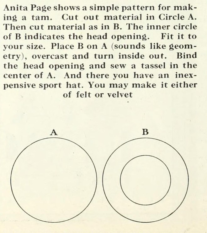 In this case, it’s needlework. Specifically, a pattern for the perennially popular tam, a hat that has never really been out of style that I can remember. Whether or not you believe that Anita herself provided the pattern is, of course, up to you. I like to cheerfully go along with the illusion but also keep my grain of salt handy.