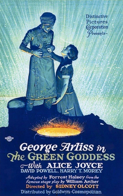The complete “Green Goddess” may be viewed on YouTube, a poor print which I think is drawn from an Alpha disc. Years ago I taped the 1929 talkie from TCM. With this one I prefer the talkie, as hearing George Arliss’s suavely menacing voice (the voice you love to hate) is really the only reason to watch this grotesque film.