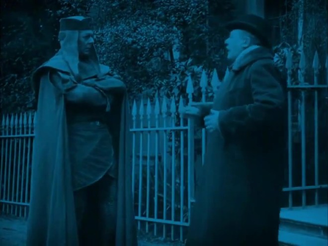 We could go on and on and on but it’s time to talk about the portrayal of Mars in this 1913 British science fiction film. It’s one of the very earliest science fiction features, though it cannot count as a space opera because it lacks the required derring-do. Instead, it is a sci-fi fable, the kind of thing that could have been a Twilight Zone episode with a few tweaks. Or, contrariwise, it is the kind of thing one would find in an off-brand performance of A Christmas Carol.