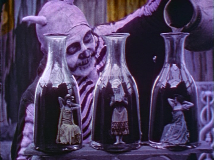 The ladies inside the bottles remind me of a similar scene in “Bride of Frankenstein” (1935). I wonder if the scene in “The Red Spectre” might have been the inspiration for that scene?