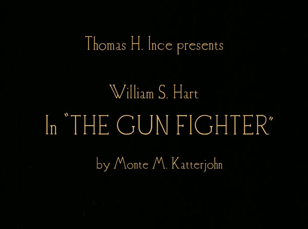 I must say, I was quite amused by the number of ways producer Thomas Ince found to credit himself in the opening titles of Blue Blazes Rawden, which was my source for designing those same opening titles in The Gun Fighter. (The cast and crew list was based on the AFI catalog.) You may recall that Buster Keaton spoofed Ince’s tendency for credit hogging in his comedy The Play House.
