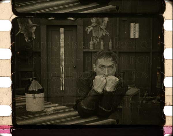 In any case, the color scheme of the Swiss material is stunning and tidily solved the mystery of which colors to use in the restoration. It should be noted that the original American release prints might have had an entirely different tinting scheme but while the surviving nitrate might not have been THE original tinting palette, it is definitely AN original tinting palette and a most attractive one.