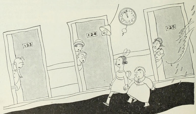 In Maurice Tourneur’s “The Life Line,” the great ship runs on the rocks late at night; the frightened passengers are hastily summoned from their berths, and rush forth, clad in variously assorted night clothes and outer garments; but to supply pathos, toddling down the slanting corridor, come two little children, daintily clad in real party clothes, curls, frillies and hair-ribbons !