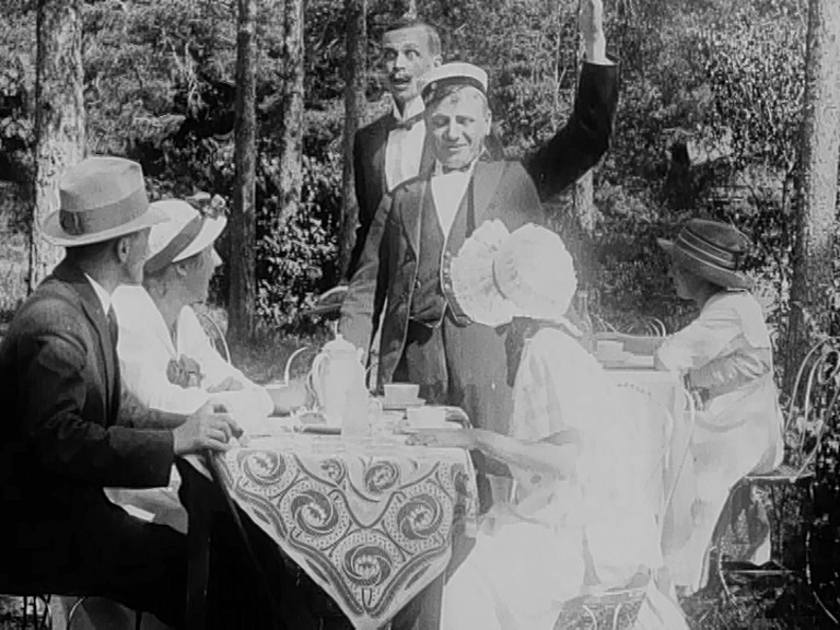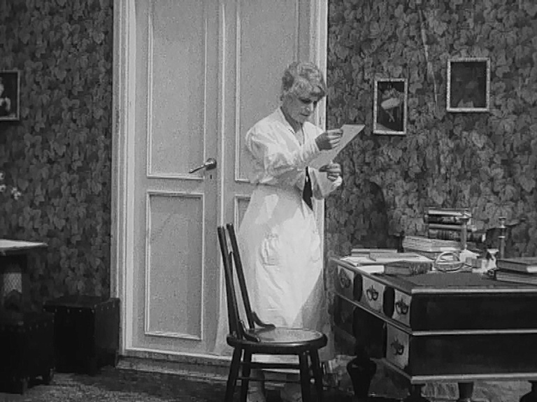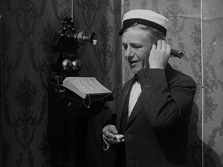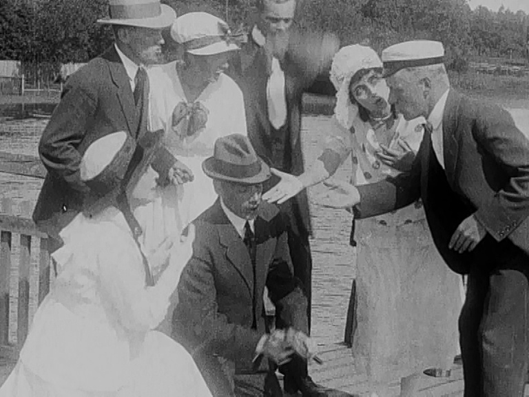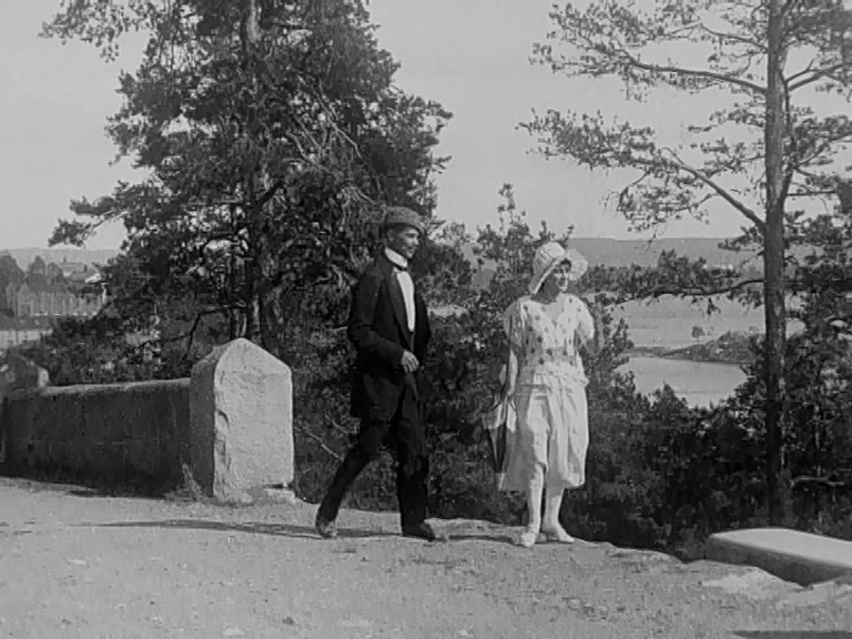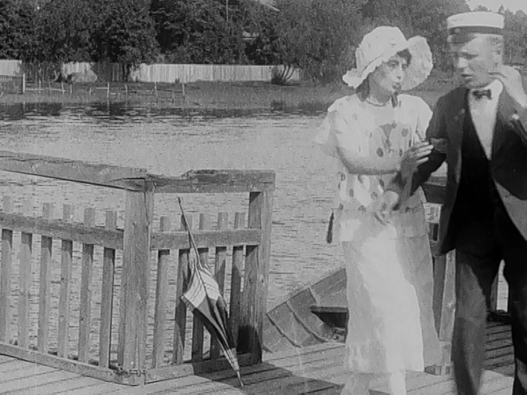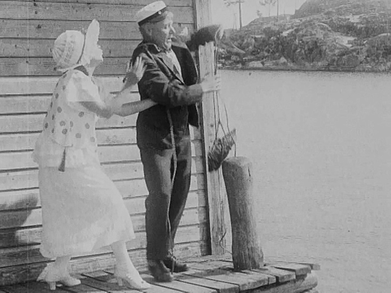 This picture is reminiscent of the romantic slapstick mastered by French comedian Max Linder with the main character stuck in a pickle that is half his fault and half that of an unfriendly universe. The scenes of Pöllövaara attempting to throw himself in the sea were also par for the comedic romance course. (Harold Lloyd spent most of the opening of Haunted Spooks trying to do himself in and there’s a Max Linder comedy called Attempted Suicide in which he spends almost the entire runtime hanging from a noose.) There’s a bit of mugging, to be sure, but it’s all generally kept under control especially compared to some of the broader slapstick that was being made at the time.
