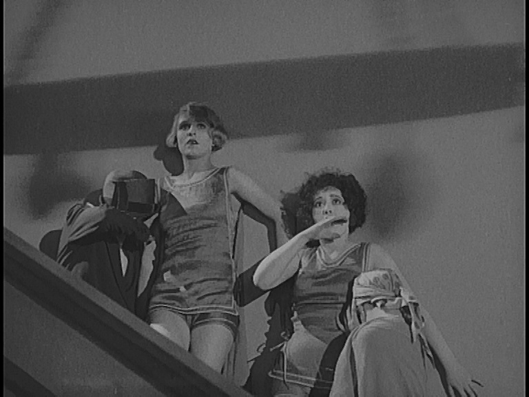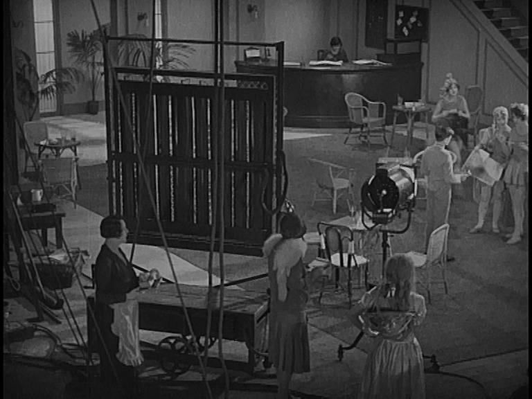 Mae and Julian are starring in a western and while he is absolutely in love with her, she far prefers the company of Andy Wilkes (David Calthrop), a Sennett-esque slapstick comedian. His set is just above the western background where Mae and Julian are working. Obviously, there is a lot of behind-the-scenes material with the mood musicians who worked on film sets and the un-enclosed spaces where separate movies would all but spill over onto one another.