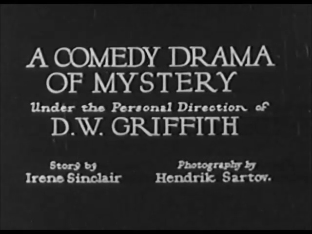 And, frankly, I wish Griffith had thought of something more imaginative than smearing the lens with Vaseline to conceal the identity of the killer. Surely clever blocking and stylish lighting could have done the trick in a far less crude manner. (See Judex as a proper examples of masking a figure’s identity in a moody and stylish manner and also shadows, so many shadows.) In this genre where cinematography is king, it’s an unforgivable miscalculation.