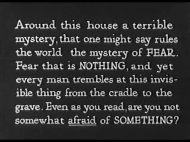 Well, Griffith does none of that. He opens the film by loftily announcing that unlike other movies, this picture requires the audience to pay attention the whole time and the story is different from anything heretofore filmed and furthermore, you are to avoid spoiling the picture by revealing its carefully-guarded secrets. Throughout the film, he continues to remind us that this is scary and suspenseful stuff and we’d best hold onto our boyfriends for protection.