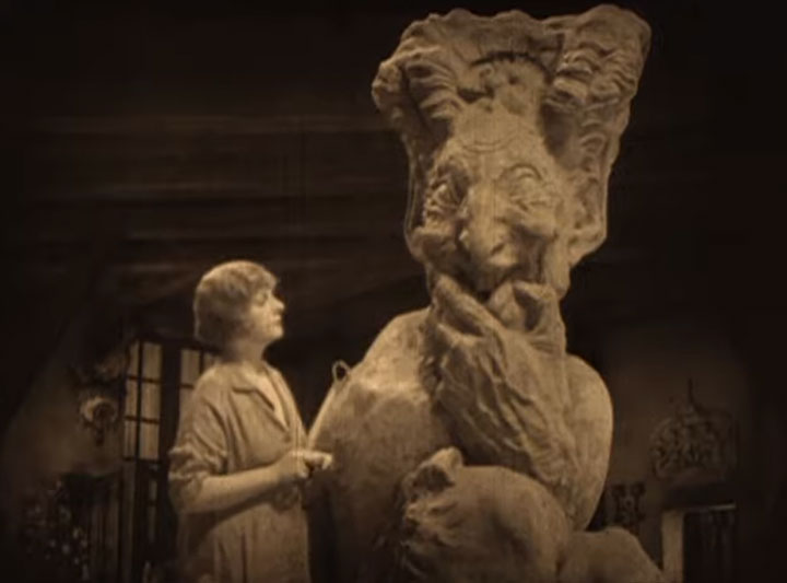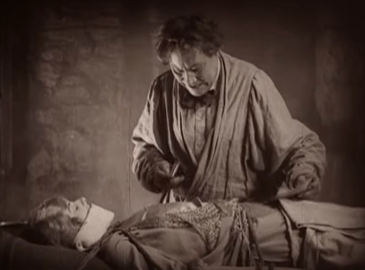 The film opens with would-be artist Margaret Dauncey (Alice Terry) sculpting an enormous clay statue of a faun. The clay gives way and falls on her, paralyzing her. (Always make sure your armature can support your medium, people! This is Art 101 stuff.) Fortunately, her uncle Dr. Porhoet (Firmin Gémier) knows a brilliant young surgeon. Dr. Arthur Burdon (Iván Petrovich) not only heals Margaret’s injuries, he also begins to court her.