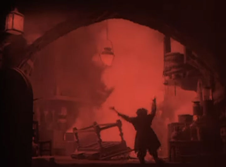 The battle to rescue Margaret is your standard cross-cut race to the rescue but it’s done exceptionally well with Haddo brandishing a knife and threatening to throw Arthur into a white hot furnace. There is, of course, a raging storm outside and all the moody atmosphere you could ask for.