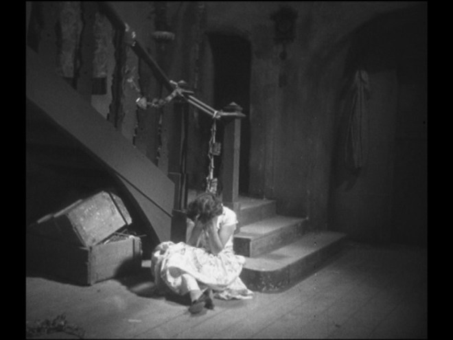 Director Karl Anton creates a beautiful, rich setting and offers nothing but empathy toward the unfortunate heroine. The village scenes are sunny and bucolic, all fields and hills and paper garlands and vibrantly printed clothing under a cheerful sun. The city is perpetually at nighttime with gaudy electric lights and mechanical toys. The prison is distinctly Germanic with sharp corners, harsh lights, inky black corners and prisoners lurking inside. In the film, only Tonka is allowed to travel freely between these three realms.