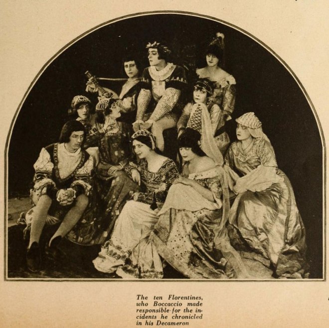 I suppose this is as good a place as any to mention that there was also a British-German co-production released in 1924 called Decameron Nights (Dekameron-Nächte) starring Lionel Barrymore and Werner Krauss. It claimed to be based directly on Boccaccio but I am not sure how much of the plague narrative was retained as I have not yet seen it myself. There was also a Russian production (contradictorily described as both a product of the 1920s and as a pre-Revolution picture) directed by Vyacheslav Viskovsky that allegedly features the plague-infused frame story of the original book.