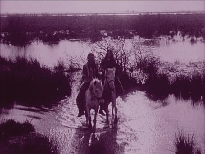 One of the western pictures director Jean Durand and his madcap team made in Camargue, France, this tells the story of a poor suitor trying to win the love of a chief’s daughter. The solution: grand theft.