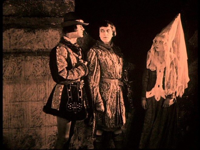 In short, we have chaos and a potential for some very exciting political intrigue. And, since fiction conventions of the time demanded it, we also have a romance between historical characters. In this case, the noblewoman and ward of the king, Jeanne Fouquet (Yvonne Sergyl) and the gallant knight and true blue Burgundian Robert Cottereau (Romuald Joubé).