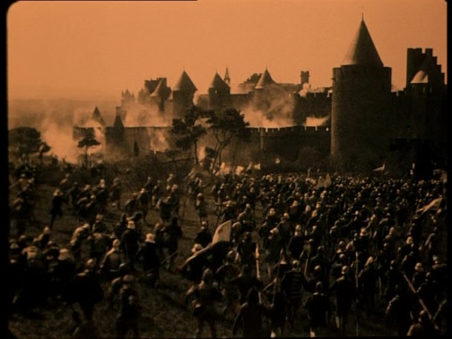 The finale of the film takes place during a full-size siege on a full-size castle complete with melee, mayhem and heavy artillery. We have smoke, we have cannons, we have blood and guts and people getting stabby. In fact all the large-scale medieval combat scenes in this picture are among the best every made and I think it compares favorably to the very latest entertainment. (And they’re well-lit; you can actually see what’s happening. Imagine.)