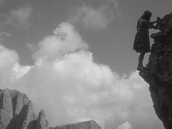 (Mountain films were basically all about showcasing climbing prowess with some kind of humanity vs. nature theme. This picture is definitely on the lighter side of that equation.)
