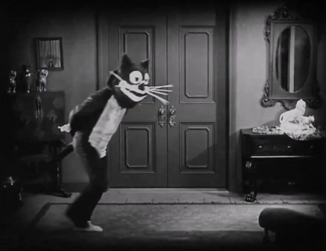 The picture is also quite imaginatively directed. In addition to the opening scene described above, we get an exciting race at the finale and an amusing sight gag in which Tom imagines a pacing Dupont to be Felix the Cat. (One of Felix’s signature bits was to pace back and forth looking furtive.) We also get more point of view shots with what looks like a handheld camera.