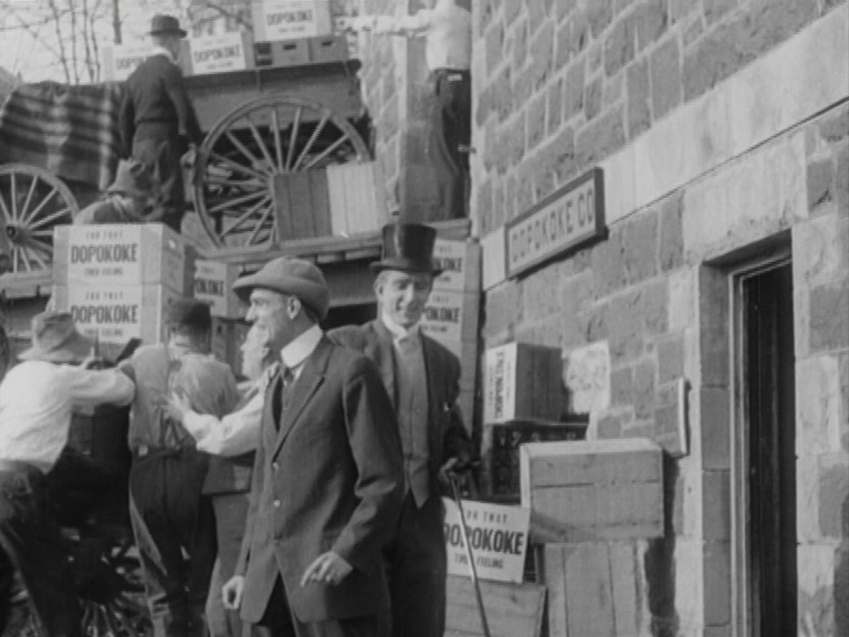For His Son is in the middle of the road with its message, probably on par with the IMP releases of 1910: less lurid than many, goofier than most, no dens of smugglers but plenty of melodrama and silly, drug-related behavior from its characters. Whether or not it was a thinly-disguised biopic of the Pembertons, it clearly takes more than a little of its inspiration from the original Coca-Cola scares rather than the caffeine-based litigation that was more current when it was made. (Remember, even Wiley had backed off the cocaine front years before.)