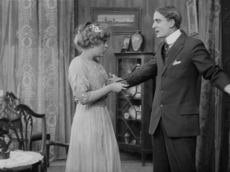 For His Son opens with a physician (Charles Hill Mailes) pondering his problem: he adores his only son (Charles West) but he doesn’t have enough money to keep the young man happy. He is tempted to use his medical knowledge for unethical profit but pushes the idea aside. The son seems to be doing all right for himself, actually. If his room décor is any indication, he’s a college kid and he’s engaged to Blanche Sweet.