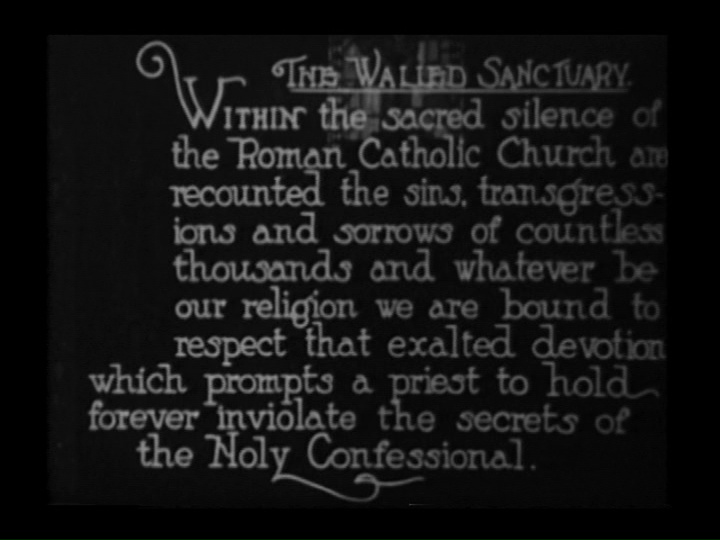 A priest hears a confession of murder but is tormented when his own brother is falsely accused of the crime and the real killer flees. Henry B. Walthall plays the man of the cloth who must find a way to clear his brother without revealing what he heard.