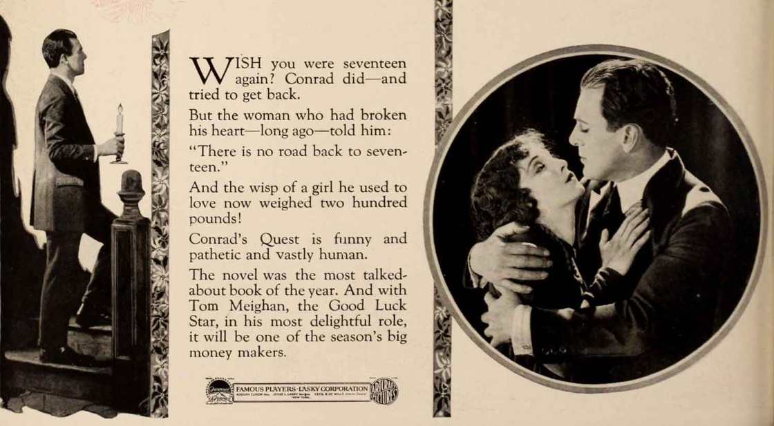While Conrad in Quest of His Youth positions itself to poke fun at the title character’s follies, he is still the main character of the thing and treated with a certain amount of seriousness that I am not sure is warranted, possibly due to the casting of Meighan. And, really, it all comes down to an independently wealthy fellow feeling a touch of ennui.