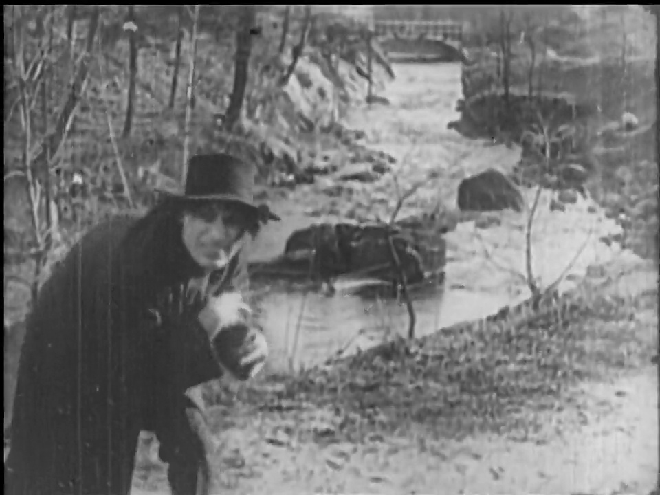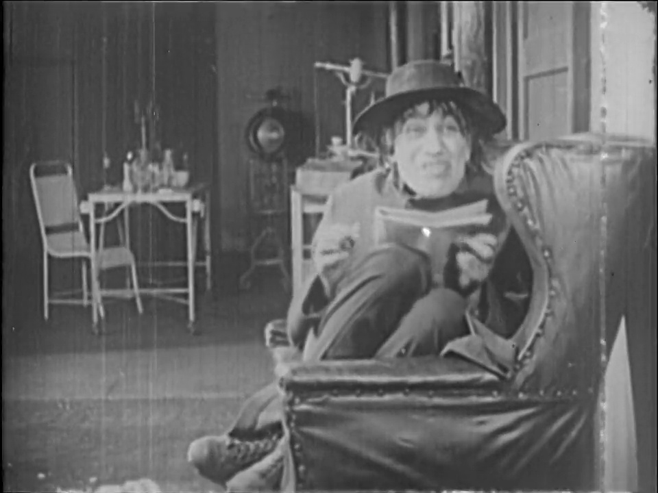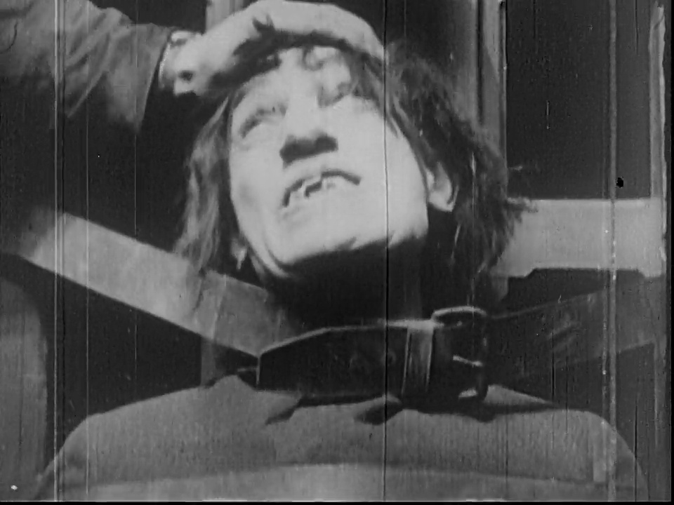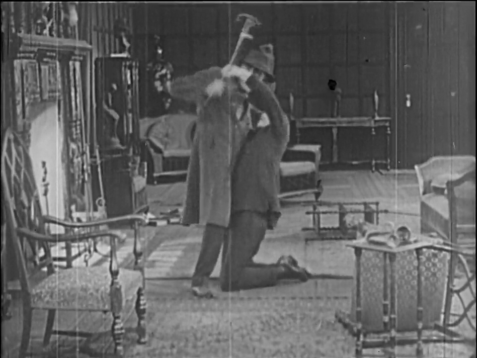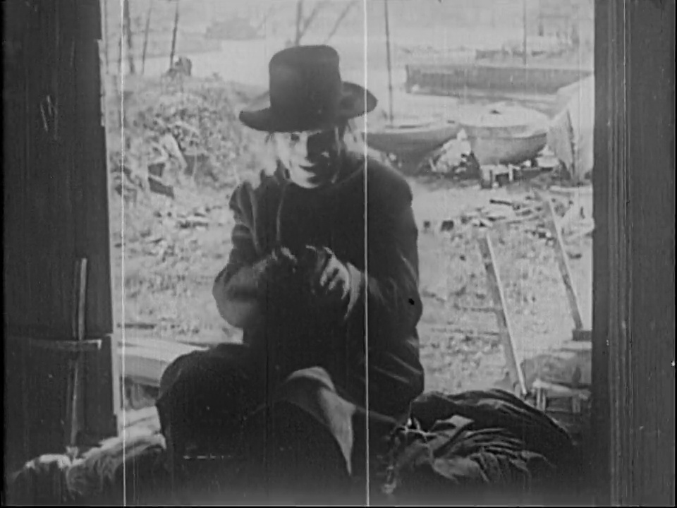 Sheldon Lewis’ Hyde launches into his reign of terror by throttling a random passerby and stealing her purse, following that up with wandering into a sawmill and trying to light it on fire. He finally escapes back to his lab, where he tries to kill Jekyll’s cat. Once he resumes his own identity, Jekyll prays for forgiveness for his sins and his agnosticism but the very next title card explains that he hires rooms so that he can better conceal his Hyde persona.