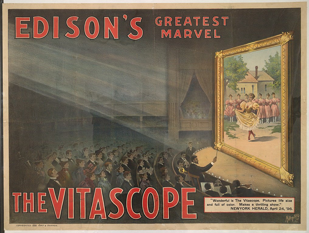 The Edison film company had, of course, been pursuing the peepshow market but rival machines, particularly the Lumière brand, were taking Europe by storm. Licensing the Jenkins and Armat machine allowed them to stake a claim on the American market before European projectors could gain traction. As the Library of Congress’s coverage of the event puts it, “The Edison Manufacturing Company agreed to manufacture the machine and to produce films for it, but on the condition it be advertised as a new Edison invention named the Vitascope.”