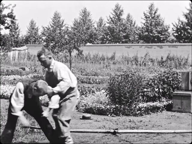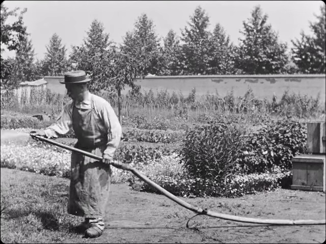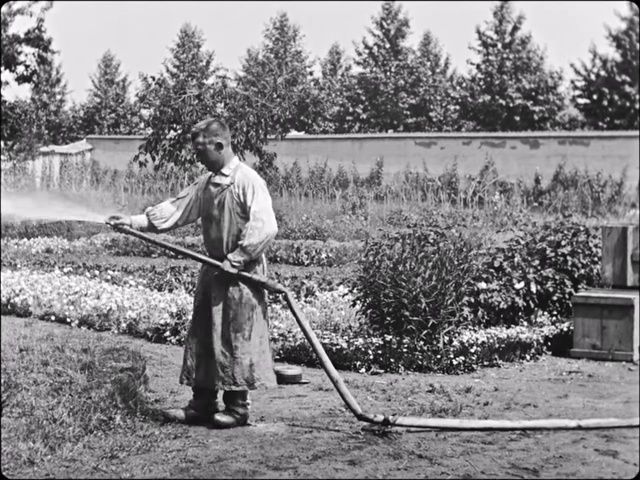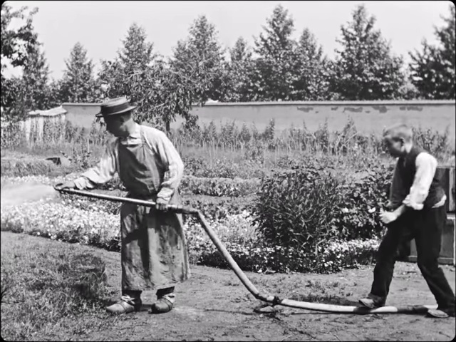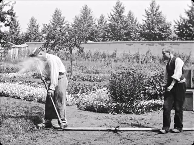 A gardener and his hose are the target of a young boy’s prank… but the tables soon turn on the mischievous lad. About as much plot as you can fit in a less-than-a-minute runtime.