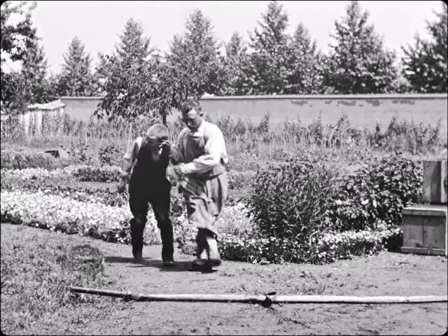 Less than a minute and simple as can be, of course, but we get a beginning, a middle and an end. The film certainly had a powerful effect on audiences of the 1890s because it was remade and ripped off multiple times. The Lumières themselves remade it in 1896 with an older boy playing the joke and being rewarded with a swift kick in the rear and a spray from the hose.
