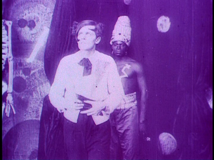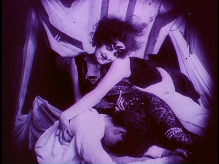 The idea that Genuine represents the threat of the New Woman to some degree is enforced by her costuming. She wears a dress at the beginning of the dream sequence, when she is shown to be peaceful and serene. From that point on, she is dressed entirely in lingerie and vampish attire that feature some form of trousers instead of skirts. It’s a little on the nose but she is quite literally wearing the pants. I should also note that a woman dressed in this manner would absolutely read as sexy bedroom attire for audiences of 1920, which helps establish Genuine’s weaponized sensuality. The costuming would not be out of place in a Cecil B. DeMille boudoir comedy of the period or a Theda Bara vamp picture of a few years before.