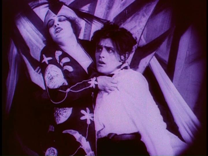 Caligari is not the only example we can use for comparison. Warning Shadows, which dealt with similar themes of sex and murder, cleverly incorporated its dream imagery through a puppet show so that the audience is never exactly sure when the characters fell asleep. In Waxworks, the frame story concerns a writer and while he may be safe (or is he?), his characters are still imperiled and the danger seems to be seeping into the real world.