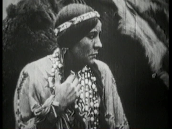 Discouraging, to be sure, but the search was not completely fruitless. (Though it should be noted that in nearly every case, all the lead players were white.) White Fawn’s Devotion (1910, Pathé Frères, extant) and The Bronze Bride (1917, Universal, lost) both also featured happy endings and the female main characters in both pictures were identified as Indigenous North Americans.