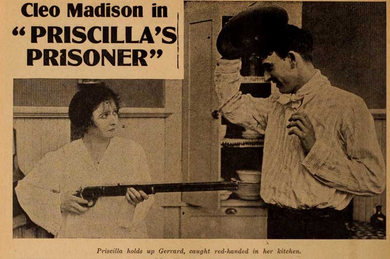 And this wasn’t an anomaly for Cleo Madison, either. In the lost 1916 film, Priscilla’s Prisoner, which she produced, directed, wrote and starred in, Madison was equally assertive. She plays a farmer who runs her smallholding singlehanded before taking the leading man prisoner under the assumption that he is attempting to rob her.