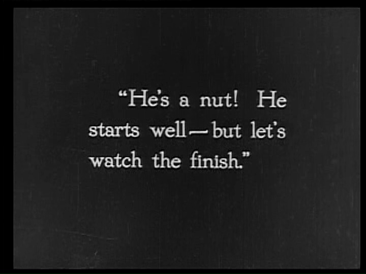 Returning to the strong points of the picture, The Nut is a good example of title cards being repeated for comedic effect. While in jail, Charlie makes the same request multiple times: “Please call up Miss Wynn, Gramercy 35. Tell her I’m heartbroken about this—I adore her—I think she’s wonderful—and—just say ‘honeybunch’ at the end.” The punchline comes later in the film with Charlie delivering his adoring, wonderful, honeybunchy spiel over the telephone personally. I doubt the gag would have landed if it had been spoken but something about the repeated message, complete with identical punctuation, just tickles my funnybone.