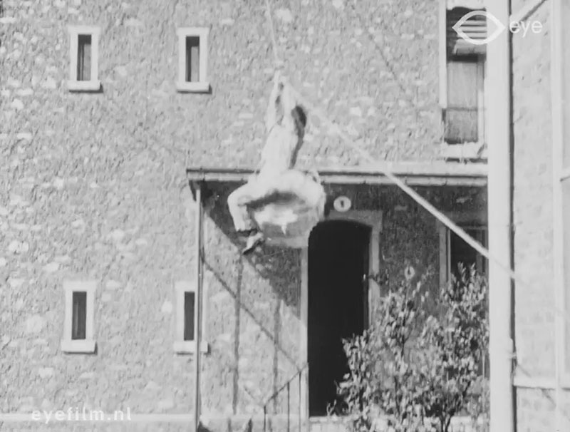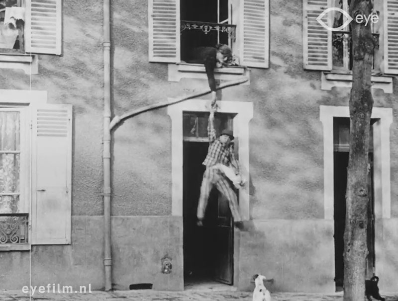 The short begins with a simple problem: Patouillard (Bertho) is broke. He soon realizes that he can obtain newspapers to sell and earn some quick cash and he sets to work enthusiastically. He shoves papers into the hands (and mouths!) of unsuspecting café patrons and shimmies up a rope to deliver a copy to an upper floor window.
