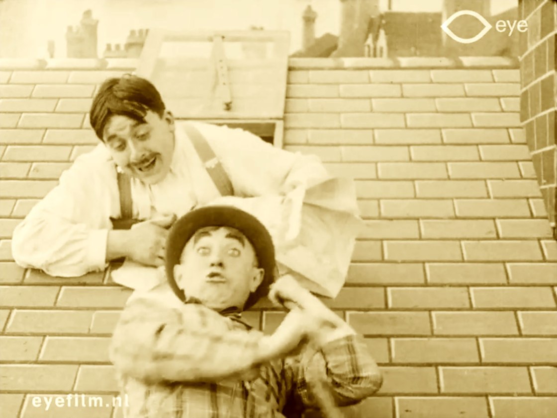 Patouillard the Newspaper Hawker is a split-reel comedy that runs about six minutes. Considering Lux’s breakneck pace of weekly releases starring Bertho, the short length was a smart way to deliver content to eager audiences. (For context, feature-length films were a thing in 1911 but the short film was still the dominant release length.)
