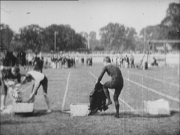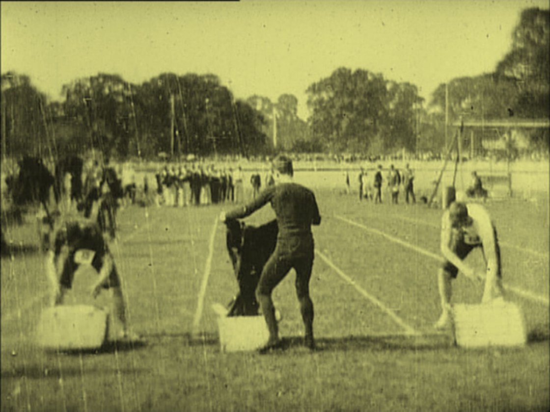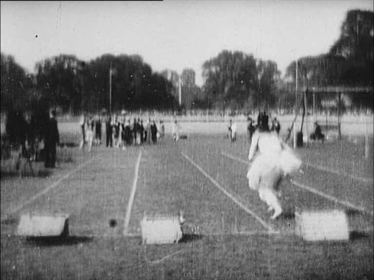 British pioneer R.W. Paul had helped launch cinema with early titles like Rough Sea at Dover but crashing waves alone wouldn’t entertain audiences for long. Paul’s films were screened at British music halls and this connection allowed him to book popular acts for his motion pictures, including a charity sports event in 1896. (You can read more about Paul’s history in connection to the music hall in Robert Paul and the Origins of British Cinema by Ian Christie.)