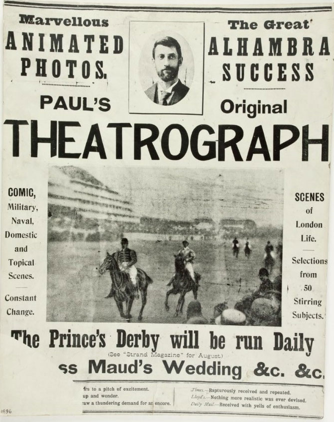 Among the Paul films screened were The Bathers, The Costermonger, Skirt Dance, and Comic Costume Race. Naturally, he saw an opportunity, made the most of this royal seal of approval and added “Exhibited before H.M. the Queen at Windsor Castle” to his advertisements.