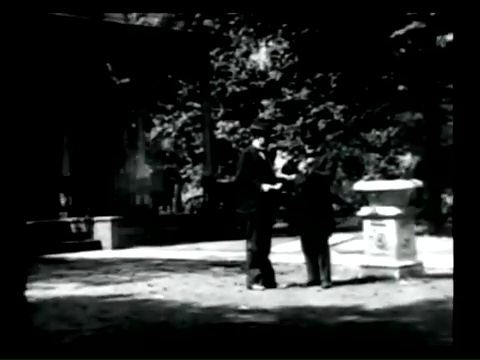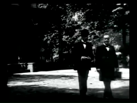 The scene is a simple one, as was usual for films of this period. McKinley is seen walking with his secretary and is handed the letter with the nomination. He puts on his hat, reads the letter, takes his hat off again and then continues his rather stiff stroll, staring at the camera the entire time.